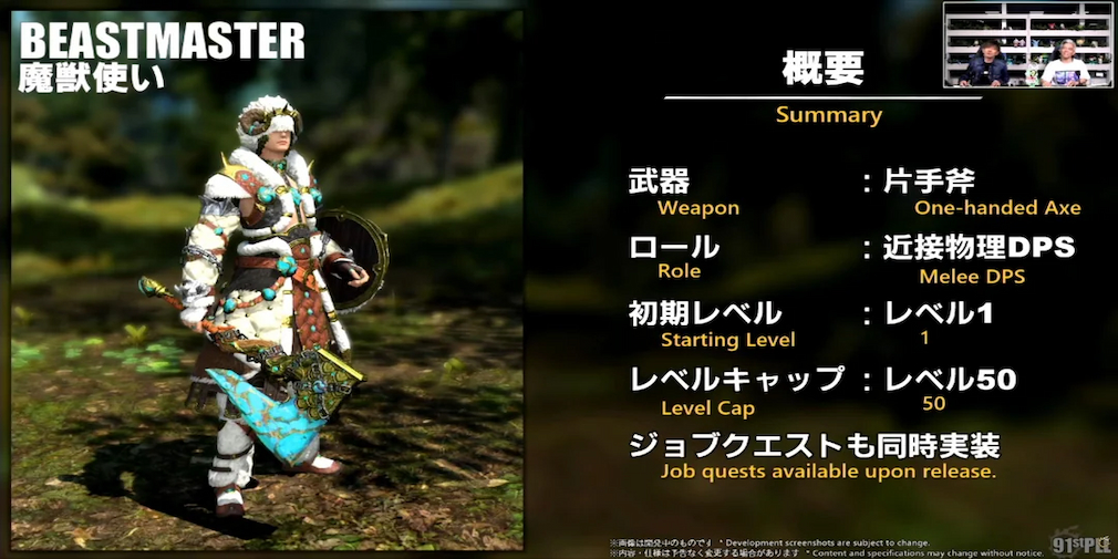 In this case, PvP series 11 will be kicking off, with a new Crystaline Conflict arena, the Archeia Harmonia. A lot of people don’t, but I love the PvP here. Housing is getting a welcome upgrade with increased limits for furnishings, yet no announcement on the internal house size change that’s been swirling around. Also, the Armoire is being expanded to accommodate more items, which is cool. All this is rubbish, though, compared to the look we got at the Beastmaster class.